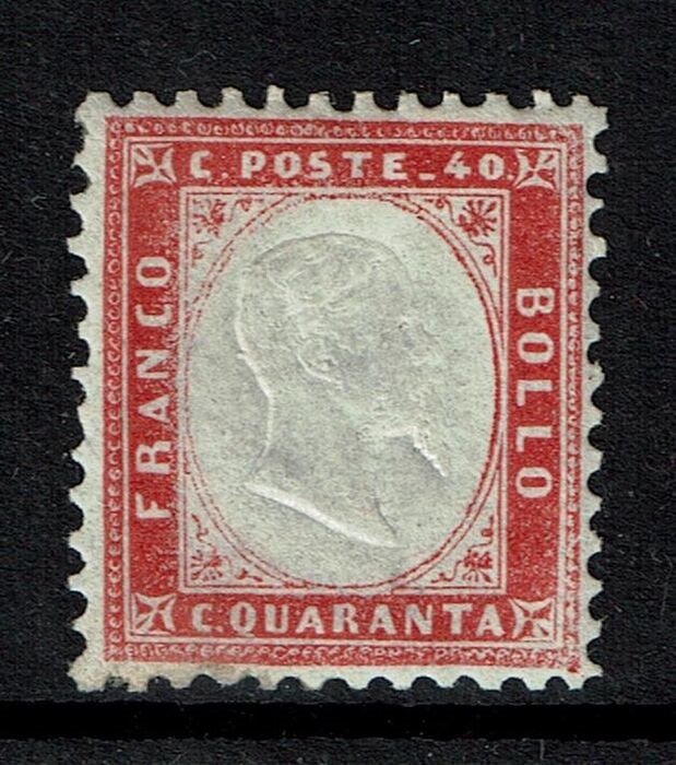 Koninkrijk 1862 - Cent. 40, Beeltenis van V. Emmanuel II. Nieuw origineel rubber intact. Saksisch 3 d. mnh extensie. Aan de onderkant (onder C. QU...) Diena certificaat zitten wat donkere plekjes. Verzending: Verzekerd in Italië - Aangetekend naar het buitenland en de inhoud beschermd met karton en in sommige gevallen ook met cellofaan en airball.