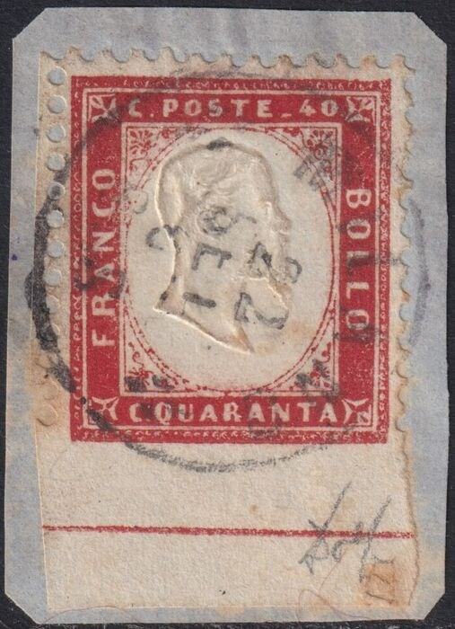 Koninkrijk Italië 1863 - I^ Em. 40 c. Non Dentellato in basso bordo integrale usato molto raro Certificato - Sassone 3l