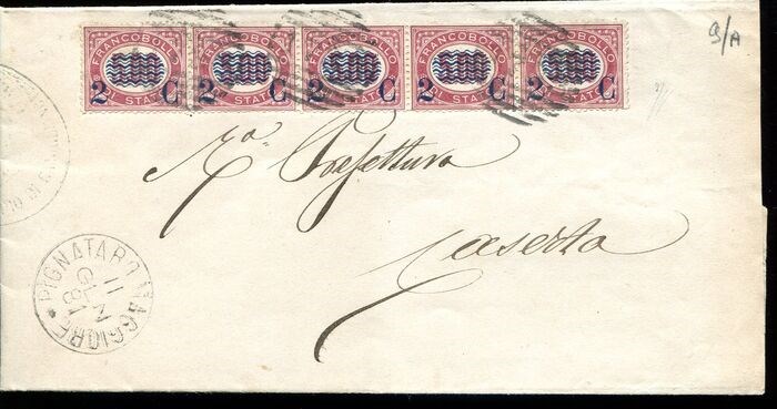 Koninkrijk Italië 1881 - Letter with strip of 2 cents/5 cents to Caserta - Sassone 35