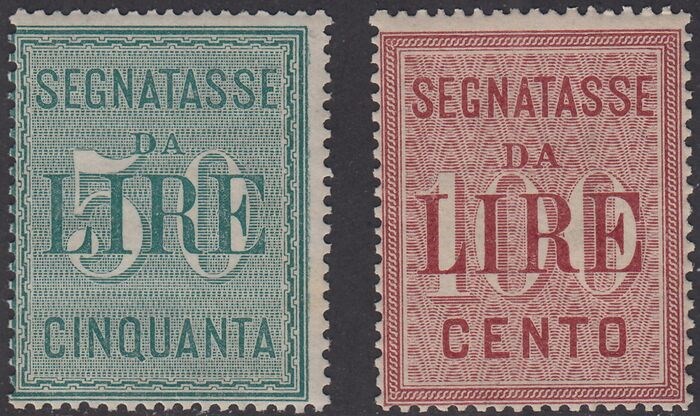 Koninkrijksverzendkosten L. 50 groen en L. 100 karmijnroze