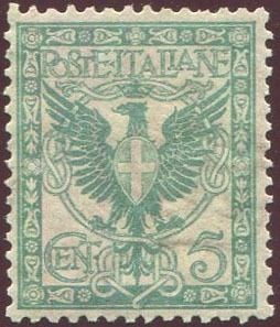 Koninkrijk Italië 1901 - ‘Floreale’ 5 cents azure green. With good centring - Sassone N. 71