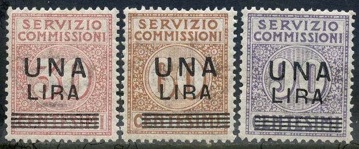 Koninkrijk Italië 1913 - Commission service, complete set of 3 overprinted values with good/very good centring. - Sassone N. 4/6