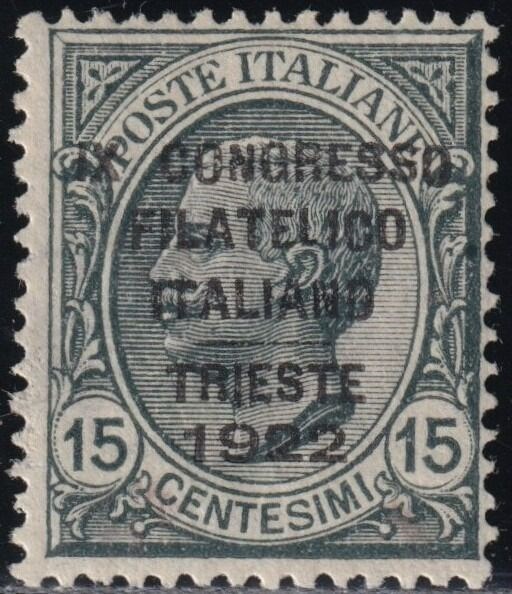 Koninkrijk Italië 1922 - 9th Trieste Philatelic Congress, 15 c. grey, centred, rare, with multiple experts’ reports - Sassone n.123
