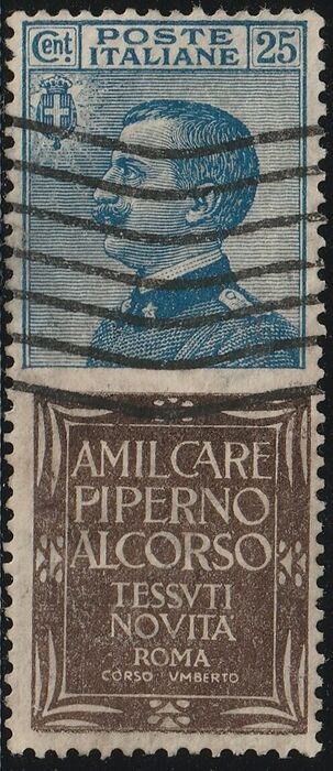 Koninkrijk Italië 1924/25 - Advertising pieces 25 c. azure and brown, Piperno, centred, used, rare - Sassone n.6