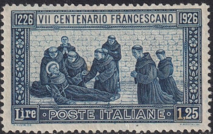 Koninkrijk Italië 1926 - S.Francesco 1,25 l. azzurro D.14 centrato integro raro lusso Certificato - Sassone n.196