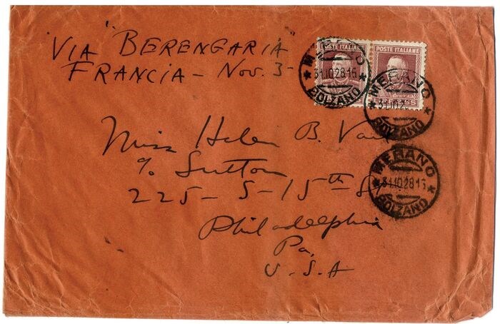 Koninkrijk Italië 1927 - Vitt. Emanuele III L. 2,55. Coppia su busta da Merano a Filadelfia - Sassone N. 216