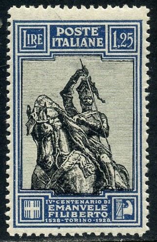 Koninkrijk Italië 1928 - Emanuele Filiberto 1.25 l. with linear perforation 13.75. With very good centring. With certificate. - Sassone N. 235/I