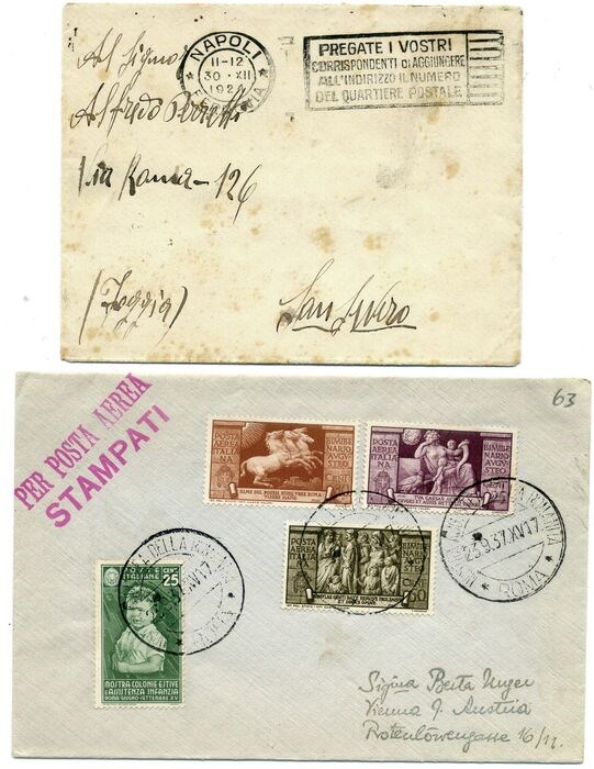Koninkrijk Italië - Pubblicitari 50 c. de Montel, Colonie estive 25 c. - Augusto PA 3 val - . Tre buste interessanti