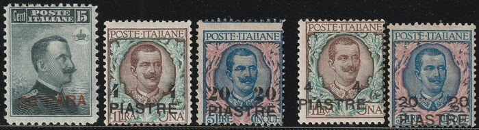 Levant - Constantinopel 1908 - 3rd + 4th issue, the 2 complete sets - Sassone n.15/19