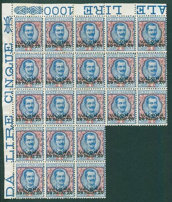 Levant (Italiaanse postkantoren van 1874 tot 1923) 1909 - Tripoli of Barberia, 5 lire. Block of 20 pieces - sassone 10