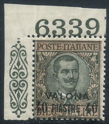 Levant (Italiaanse postkantoren van 1874 tot 1923) 1909 - Valona, 10 lire con numero di tavola. - Sassone N. 8
