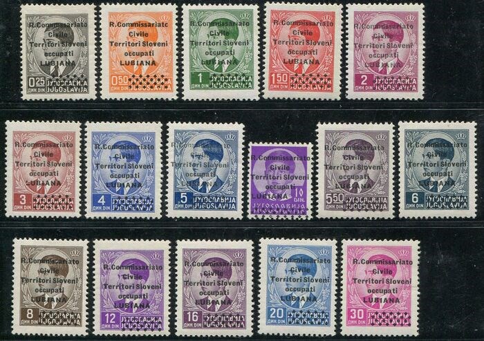 Ljubljana 1941 - Regio Commissariato Civile, serie completa di 16 valori - Sassone N. 18/33