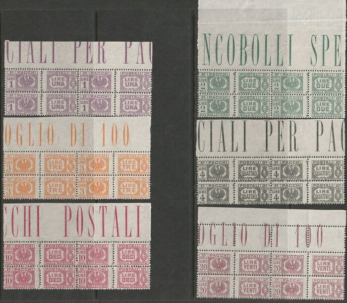 Luitenant 1946 - Pacchi Postali senza fasci al centro Serie Completa in Quartine integra rara lusso - Sassone S.2106