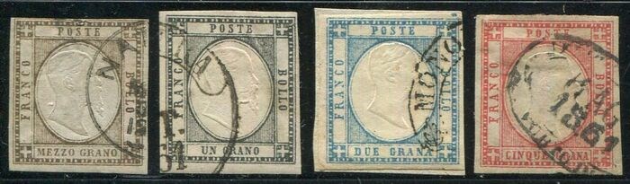 Napolitaanse provincies 1861 - Half, one, two and five grana. Clear and well-positioned cancellations - Sassone N. 18d/21
