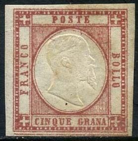 Napolitaanse Provincies 1861 - Victor Emmanuel II, 5 grana with complete framing line at the bottom. With certificate - Sassone N. 21o