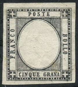 Napolitaanse provincies 1861 - Vittorio Emanuele II, 5 grana, prova in nero senza effigie - CEI P26