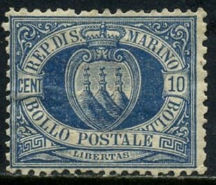 San Marino 1877 - Coat of arms, 10 cents azure. With certificate. - Sassone N. 3A