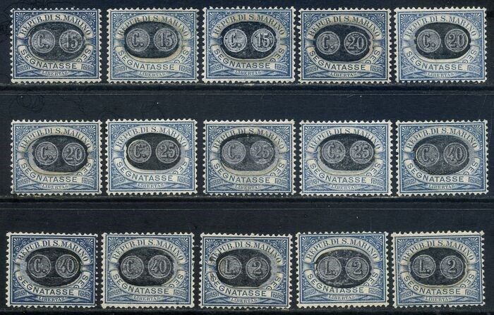 San Marino 1931 - Postage due, ‘masks’; complete set of 15 values with very good centring. Extremely fine - Sassone N. 32/46