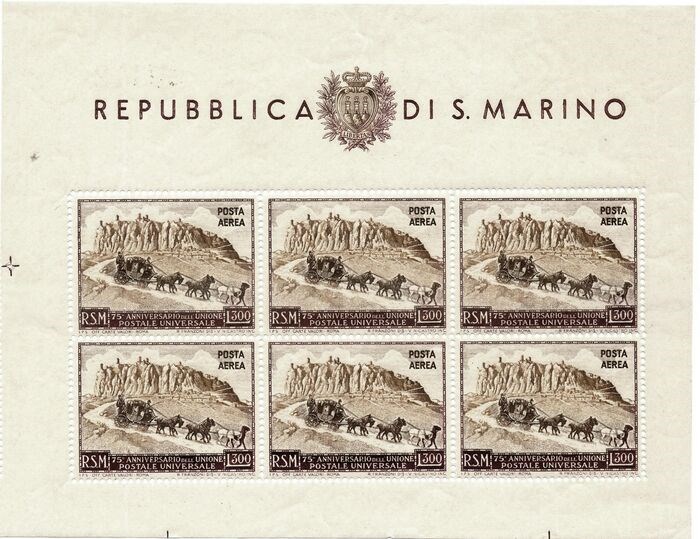 San Marino 1951 - Unione Postale Universale L. 300. Foglietto - Sassone N. 10