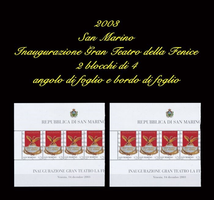 2003 San Marino 2 blokken van 4 Inhuldiging van het Gran Teatro della Fenice MNH.