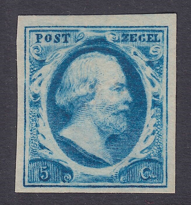 NVPH 1b plaat I positie 25 met Attest H. Vleeming: "Ongetand zegel echt, ongebruikt zonder gom. Breedte randen variërend van 0,70 - 1,50 mm. Fris vol- tot breedrandig zegel zonder gebreken" d.d. 17-01-2023.