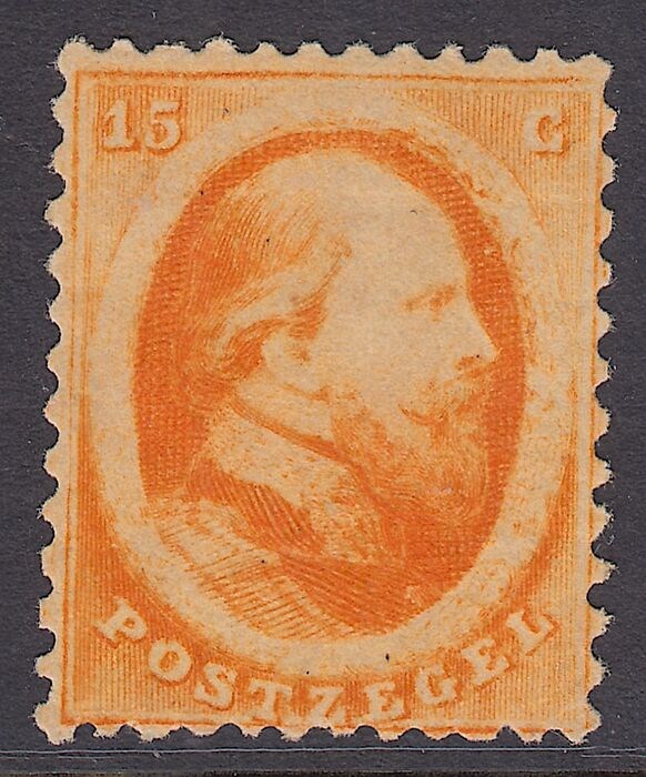 Attest H. Vleeming: "Zegel en tanding echt, gom origineel met plakkerrest.