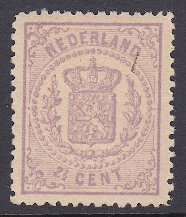 Attest H. Vleeming: "Zegel en tanding echt, gom origineel en postfris met origineel gomrimpeltje. Minimaal bruin vlekje op gom en voorzijde streepje, overigens zeer fris zegel. Rechtsonder rond hoekje, overigens mooi getand en goed gecentreerd,