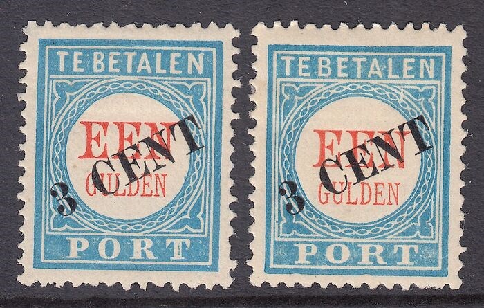 Nederland 1910 - Portzegel opdruk, met variëteiten open lijst en barst - NVPH P27fb + P27fc