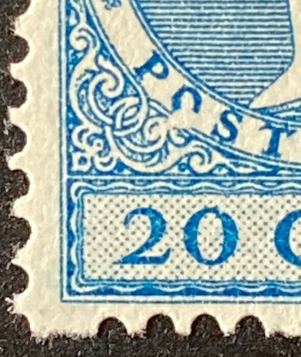 Met klein attest Vleeming: "Variëteit: wit vlekje onder de O van POST..... Zegels met druktoevalligheid en (rol)tanding echt, gom origineel met plakker(rest)..... Geen gebreken."
