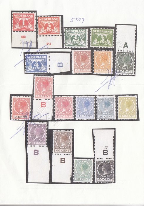 Complete serie postfris met Attest H. Vleeming: "Zegels en roltanding echt, gom origineel en postfris, 25, 30, 40, 50 en 60 cent originele zwarte puntjes in papier. 50 cent gom gelig getint overigens frisse serie zonder gebreken", d.d. 26-05-2015.