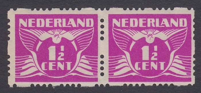 Nederland 1928 - Vliegende Duif, met plaatfout GENT i.p.v. CENT in roltanding paar - NVPH R35 P