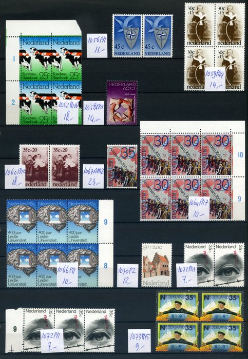 Postfrisse collectie plaatfouten. Zowel blokjes, paartjes als losse zegels.