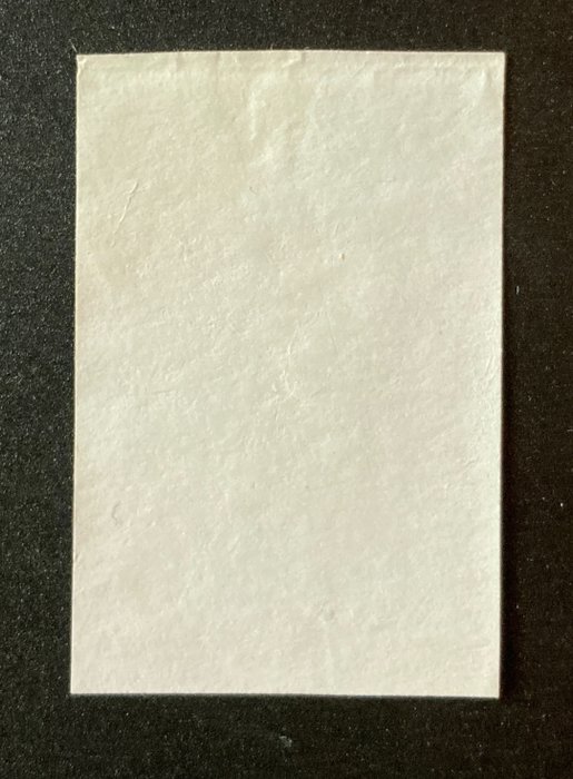 Met klein attest Vleeming: "..... variëteit vrijwel ONGESTANST, deels door niet doorgekomen stans..... Ongestanst zegel echt, vlagstempel originele afdruk..... enkele kreukjes."