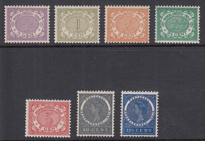 Nederlands-Indië 1903 - Koningin Wilhelmina, serie met loslatende inkt - NVPH 40a/49a