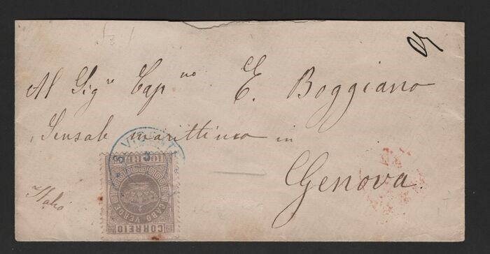 Kaapverdische brief van São Vicente naar Genua met 100r kroonzegel