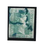 Spanje 1850 - Isabella II. 10 reales green, blue spider type postmark. Graus certificate - Edifil 5