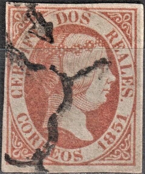 Spanje 1851 - 1851 - Isabella II - 2 r. orangish red - Edifil 8