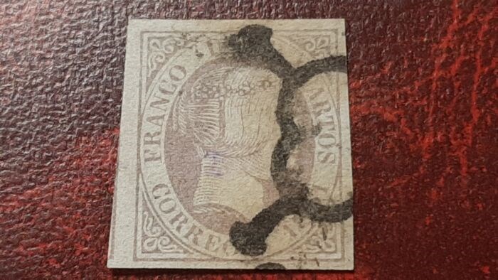 Stempel met zwarte spin. Zegel met volledige en zeer brede marges, inclusief de linker die deel uitmaakt van de vorige zegel.