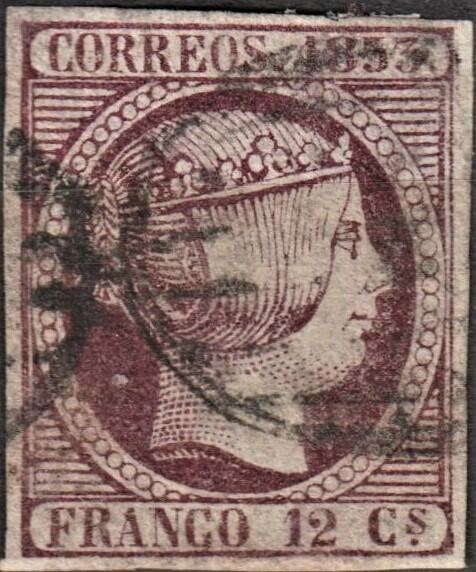 Spanje 1853 - 1853 - Isabella II - 12 cu. violet - Edifil 18