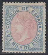 Spanje 1867 - Isabella II. 25 m well centred, signed by Roig - Edifil 95