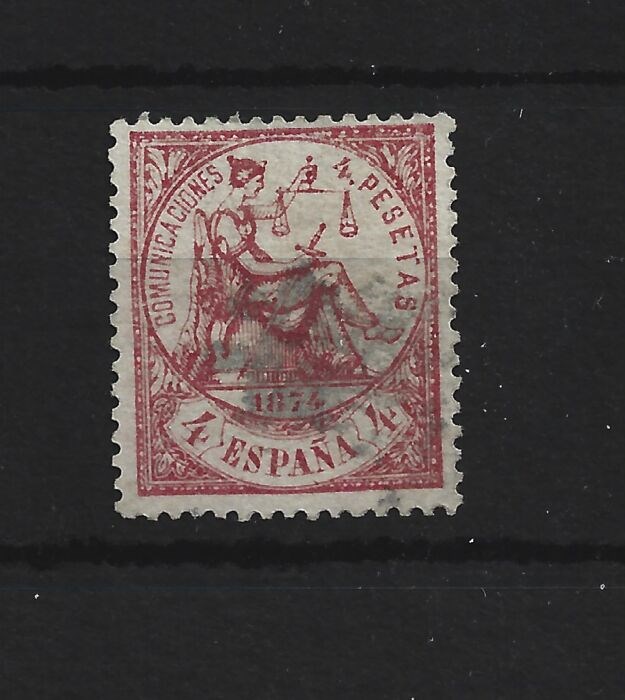 Spanje 1874 - 4 pesetas carmine, allegory, perfect centring, signed by Roig - Edifil 151