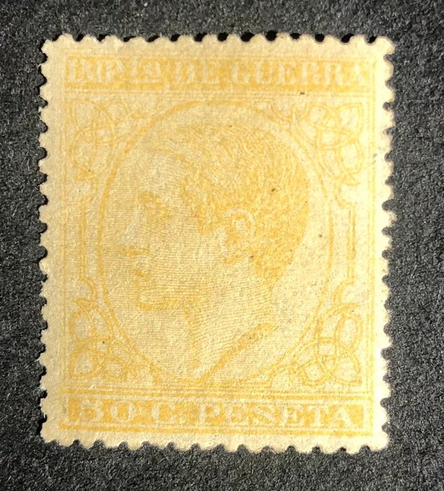Zeldzame Alfonso XIII postzegel van 50 gele centen.