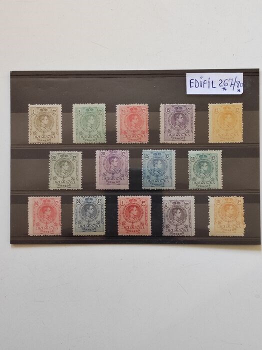 Complete serie Alfonso XIII type medaillon, nieuw en met Edifil 267*/280* bevestigingen, cataloguswaarde €450 met normale centrering van de tijd, zie de afbeeldingen voor een eigen indruk.