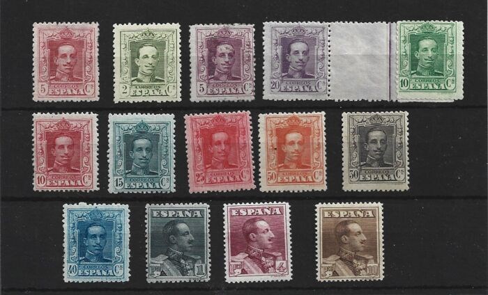 Spanje 1922/1930 - Alfonso XIII complete set with certificate for face values in pesetas - Edifil 310/323df