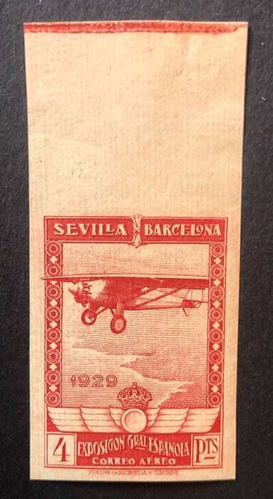 4 pt zegel. Airmail Pro Tentoonstellingen van Sevilla en Barcelona.