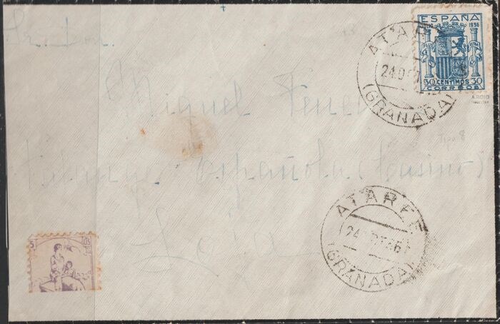 Spanje 1936 - 1936 - Coat of arms of Spain - 30 c blue on letter - Edifil 801 carta
