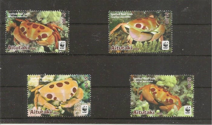 MNH 4 postzegels uit 2014 spotted Reef Crab uit Aitutaki.