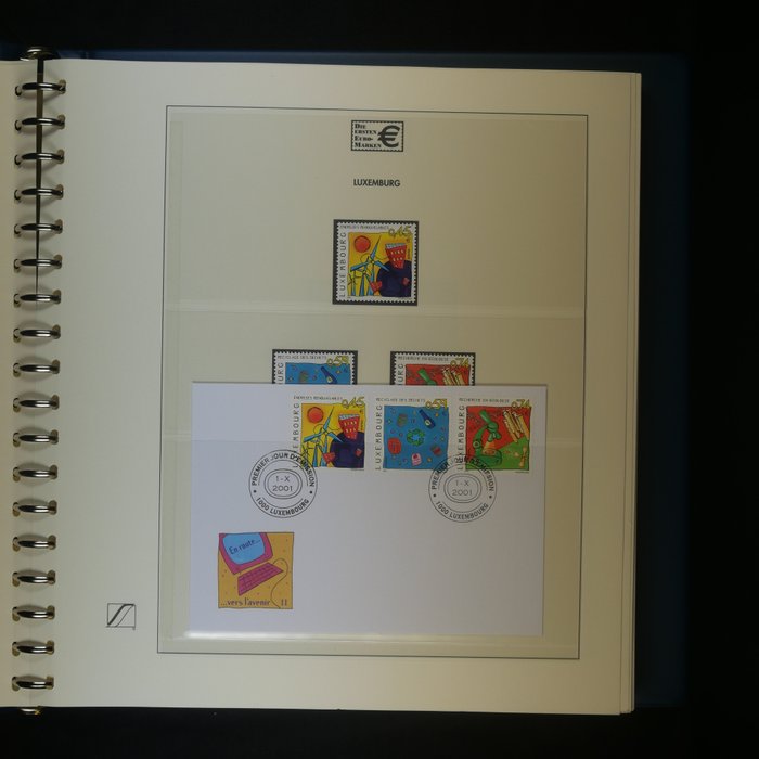FORMULIERVERZAMELING "De eerste EURO-zegels" . Collectie muntpostzegels uit de tijd dat de euro werd ingevoerd. Enorme nominale waarde, aangezien veel vaste series maximale waarden bevatten (tot 10 euro). Alles als nieuw in de Lindner ringband en albumbladen. Verzendwaarde geschat op ongeveer 160-170 euro.