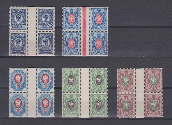 Russische Federatie 1908/1911 - Russian Empire. A series of quart blocks, without stamp No. 102 "15 kopecks" - Zagorsky # 94-101/103-108