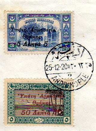 Uniek, uiterst zeldzaam: Griekenland - Thracië 1920 "Υπάτη Αρμοστεία Θράκης' (Hoge Commissie van Thracië) opdruk op postzegels van Turkije. De enige set uitgegeven door deze autoriteit, volledige set van 9 postzegels gebruikt op omslag - zeer mooie set, mooie verschijning
